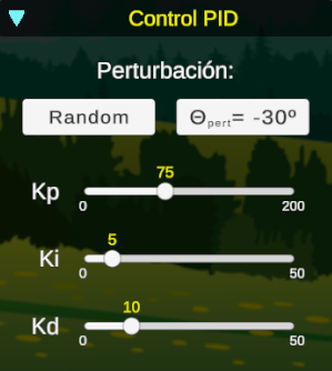 Puedes modificar los parámetros de control o generar una perturbación para observar la respuesta del sistema controlado.